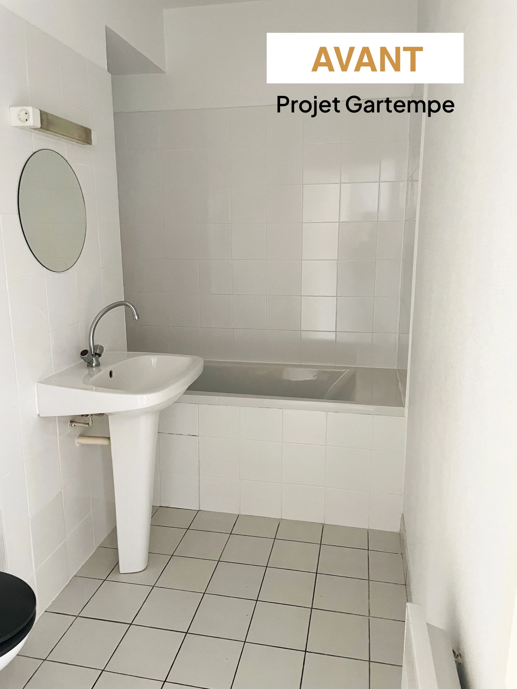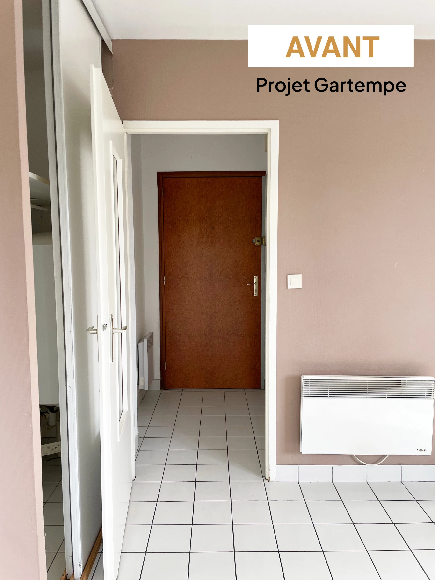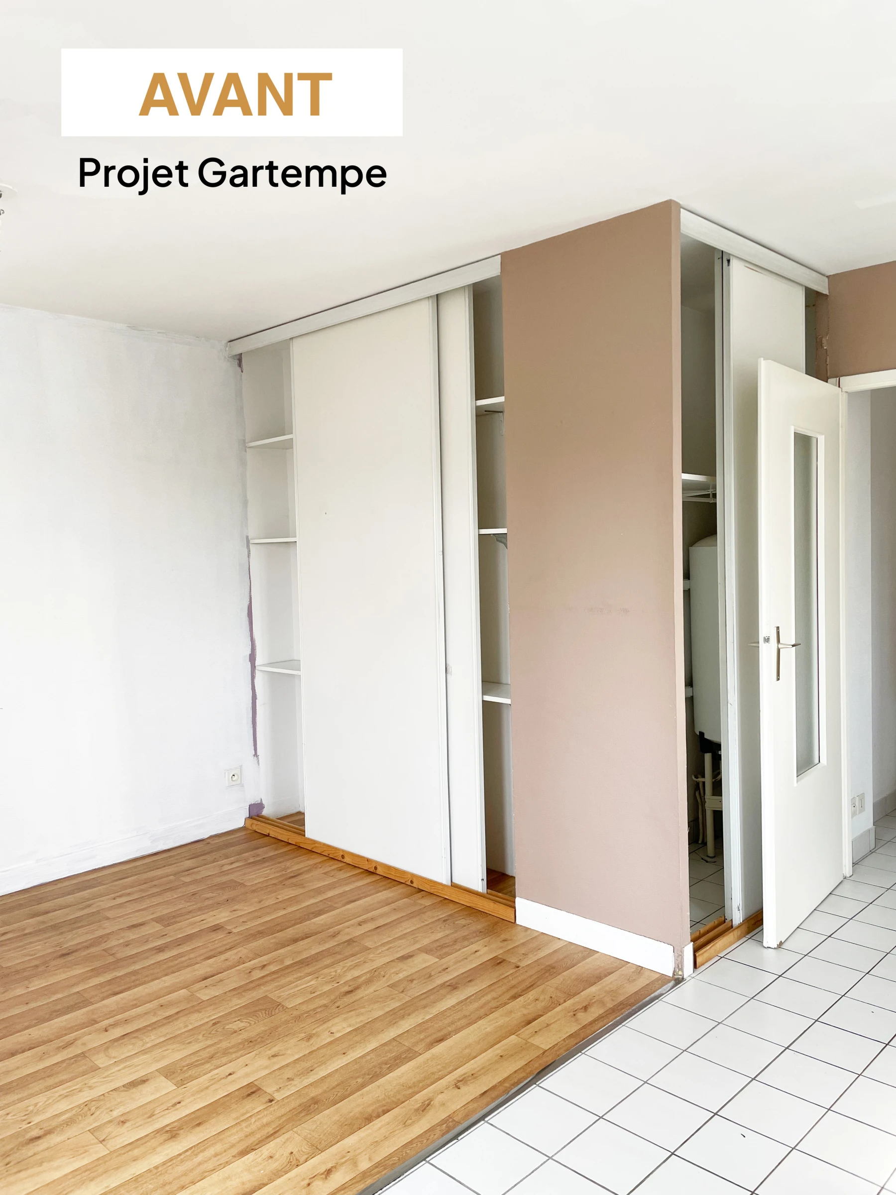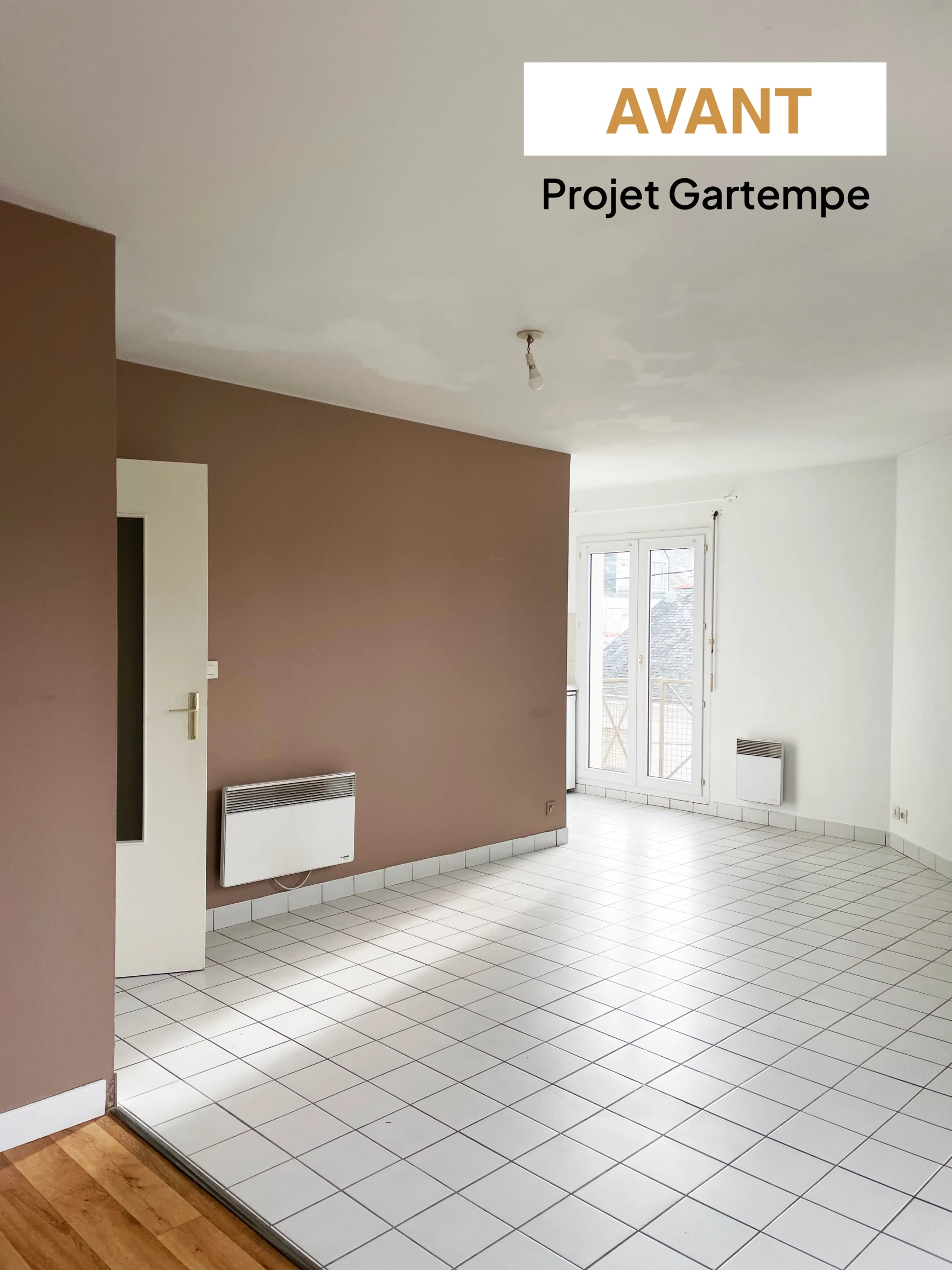 Les volumes ont été complètement redéfinis pour ce studio nantais. Le positionnement des cloisons a été modifié pour permettre de séparer intelligemment les espaces de l'entrée, du salon, du coin nuit, de la cuisine, de la salle de bain, tout en optimisant les solutions de rangement. La teinte bleue est un fil conducteur dans le développement de ce projet, ainsi que les lignes graphiques que l'on retrouve aussi bien sur les murs (claustra, papier peint, verrière) que dans la décoration (tapis, vase, coussins).