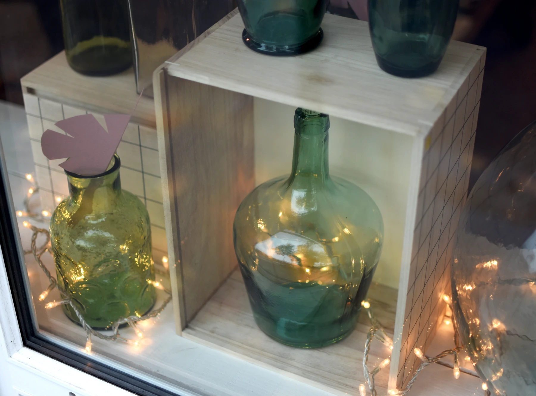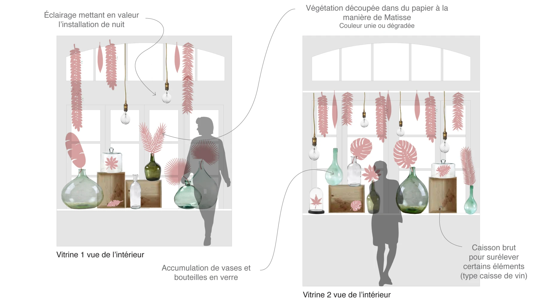 Dans cette proposition, j’ai travaillé sur la mise en valeur d’un objet vendu par la boutique : “ la Dame- Jeanne” en utilisant le principe d’accumulation. Par ce procédé, l’objet est mis en valeur, sa matière “le verre”, sa transparence et sa teinte.