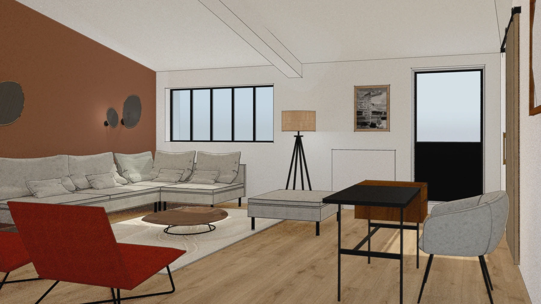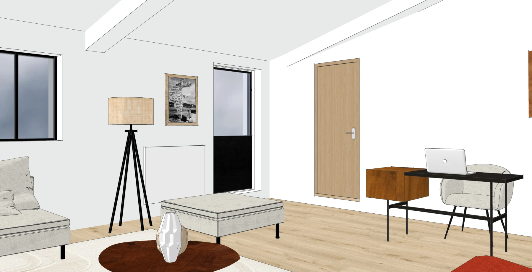 Ce projet a été réalisé pour un couple avec un enfant. Ils ont pour projet de rénover l’atelier attenant à leur maison pour leur permettre d’utiliser cet espace pour travailler dans un cadre agréable, mais également pour recevoir des amis confortablement le temps d’un week-end.